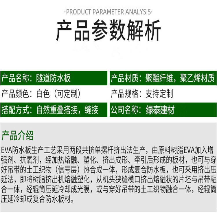 防水板是以高分子聚合物為基本原料制成的一種防滲材料,既可以防止液體滲漏,也可以預(yù)防氣體揮發(fā)。在建筑、交通、地鐵、隧道、工程建設(shè)中廣泛運(yùn)用。防水板主要功能是防止液體的滲漏和氣體的揮發(fā), 防水板在巖石工程中的作用主要為防滲和隔離,但是同時(shí)也起到加強(qiáng)和防護(hù)的作用。它主要應(yīng)用在:土石壩、堆石壩、砌石壩、混凝土壩、尾礦壩、污水庫(kù)壩、渠道、蓄液池等工程的防滲,地鐵、地下室和隧道防滲襯砌,公路鐵路地基的防滲,衛(wèi)生垃圾填埋場(chǎng)中配合長(zhǎng)絲土工布、膨潤(rùn)土防水毯等土工材料使用等等。