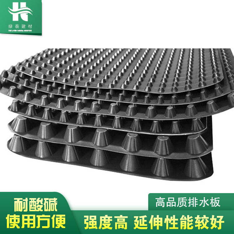 排水板采用高密度聚乙烯(HDPE)為主要原料,經(jīng)高科技生產(chǎn)線制造而成的柔韌性防水卷材,產(chǎn)品具有抗壓強(qiáng)度高,柔韌性好,抗拉強(qiáng)度高,耐腐蝕、耐老化、耐植物穿刺,不會(huì)分解、防水環(huán)保等特性,易于按裝,使用年限可達(dá)100年以上.