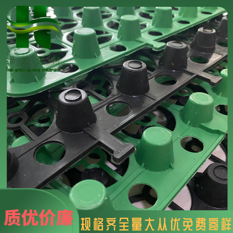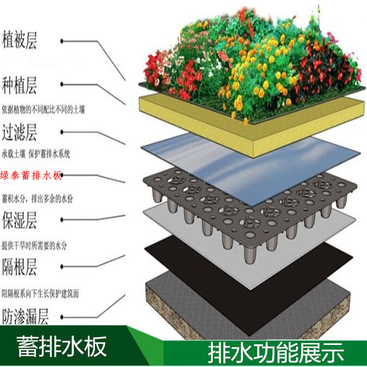 蓄排水板采用聚乙烯或聚丙烯經(jīng)加熱加壓定型形成的一種既能營造具有立體空間支撐剛度的排水通道,又可蓄水的一種輕型板材。該種板材自身就具有蓄水、排水兩種綜合功能,板材具有空間剛度極高的特點,抗壓性明顯優(yōu)于同類產(chǎn)品(可以通過現(xiàn)場試驗檢驗),能夠承受400Kpa以上的高抗壓負荷,同時可以承受在種植頂板回填土過程中機械碾壓的極端負荷情況。